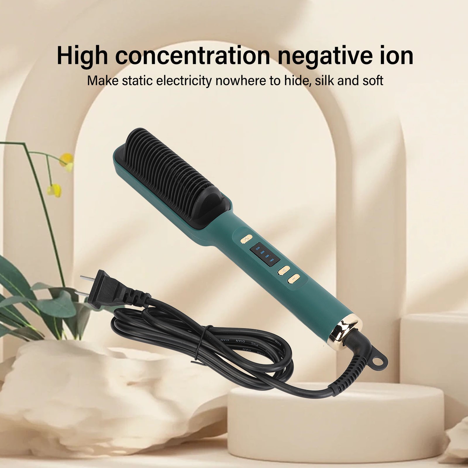 Hair Straightener Brush Negative Ions 2 In 1 Heated Hair Comb For Straight Curly