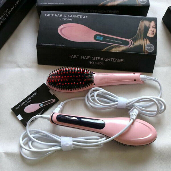 CERAMIC HAIR STRAIGHTENER HEATING ELECTRIC BRUSH COMB IRON STRAIGHT HAIR LCD NEW