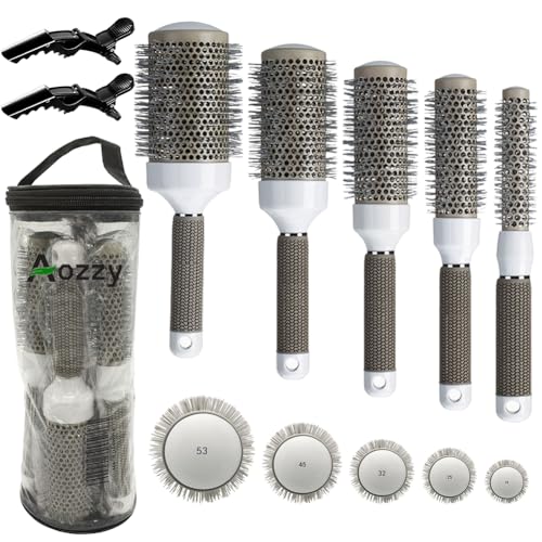 Aozzy Round Brush Set, Round Brushes for Blow Drying, Hairdressing Brushes Sets for Woman Curly & Straight Salon Hair Styling, Pottery Ionic Blow Dry Brush Set (19mm 25mm 32mm 45mm 53mm)