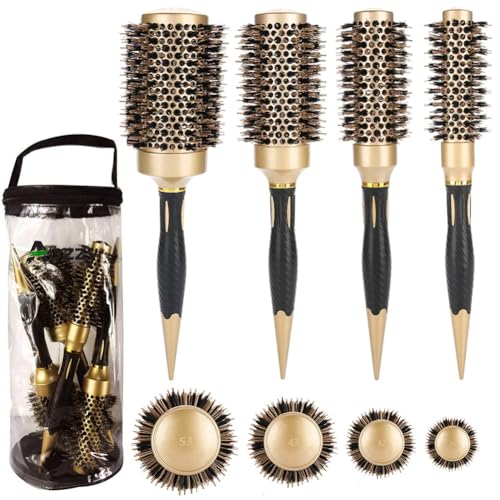 Aozzy Round Hair Brush for Blow Drying Professional Pottery Lonic Barrel Hair Styling Curling/Straight Women Boar Bristle Hairbrush Round Set