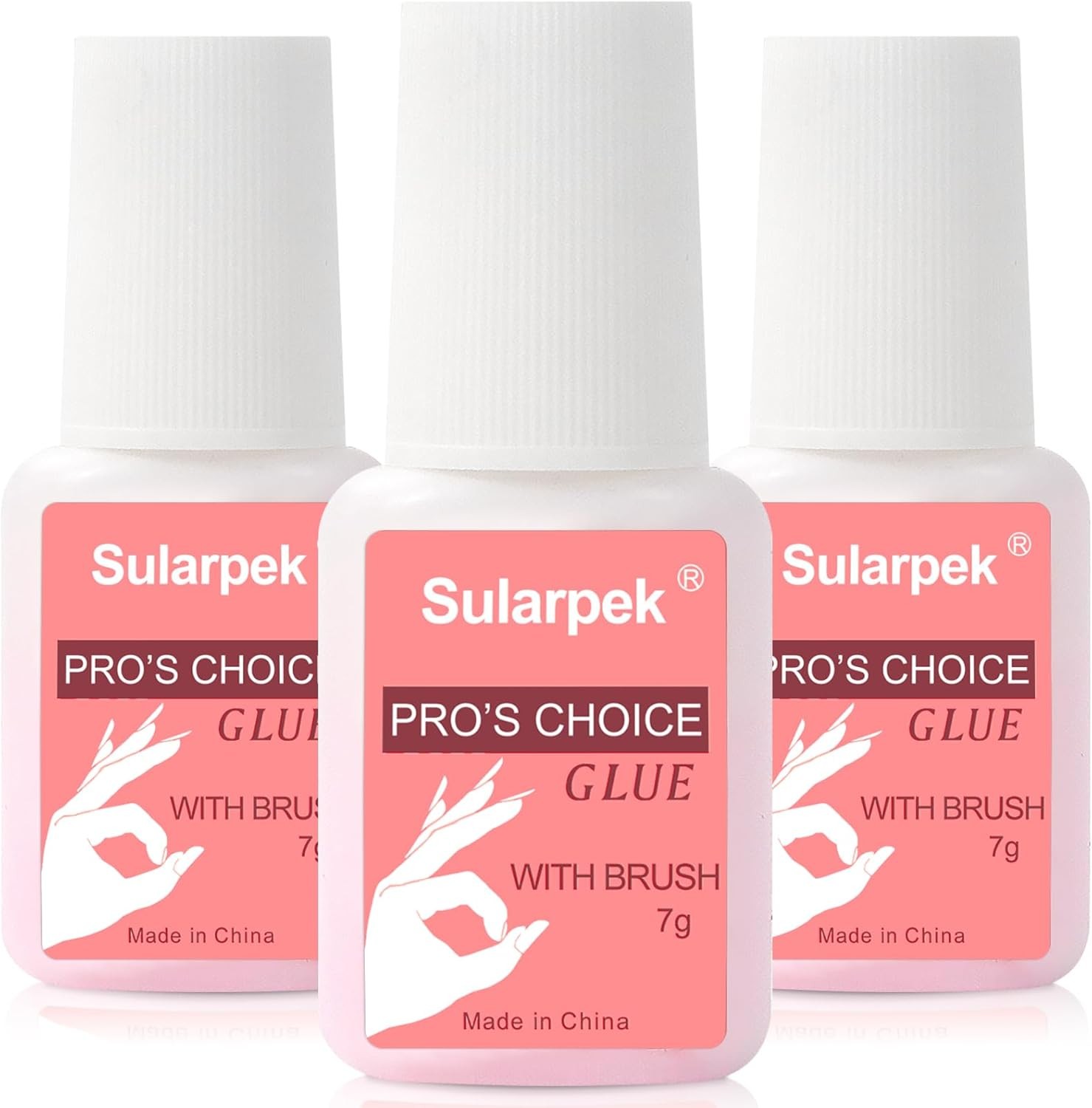 3 PCS Extra Strong Nail Glue, 7ML Brush-On Gel for Applying Artificial Nail Tip