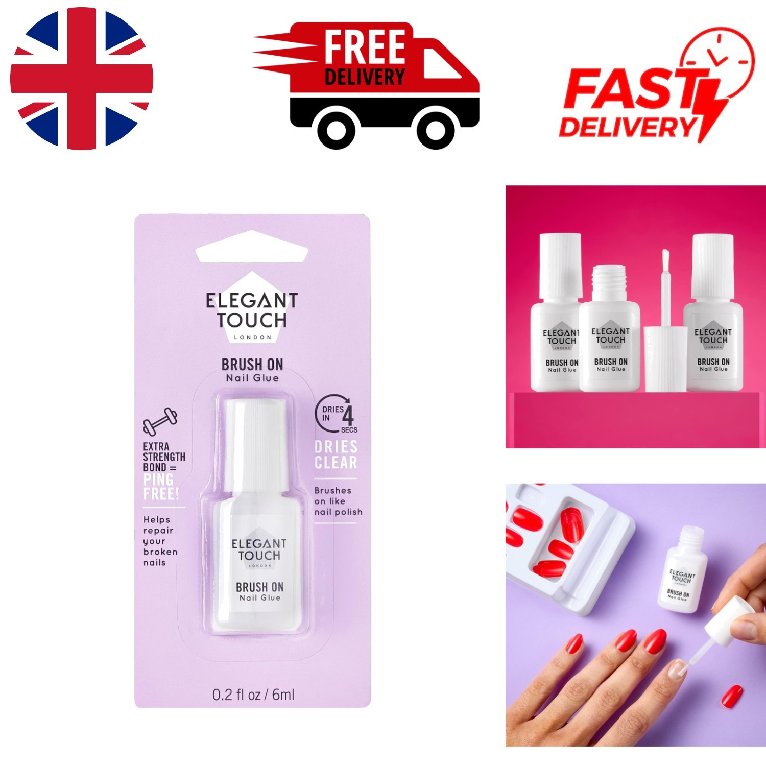 Elegant Touch 6ml Nail Glue - Brush On Applicator for Precision Application