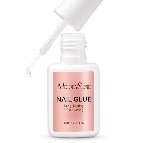 Melodysusie Brush-On Nail Glue for Acrylic Nails Press on Nails Quick-Drying Super Strong Long Lasting Adhesive for Nail Tips Fake Nails No UV Lamp Needed with Easy Application 10ml