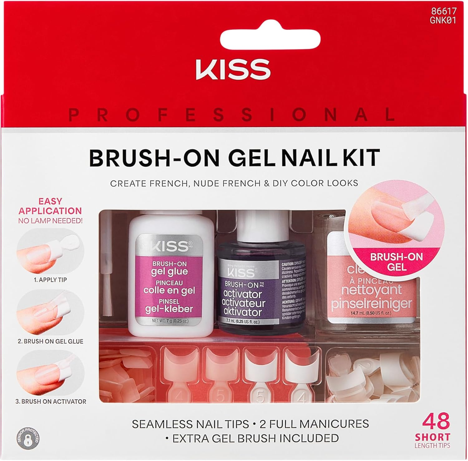Kiss Brush-on Gel Nail Kit with 48 Short Length Tips 40% more Glue French