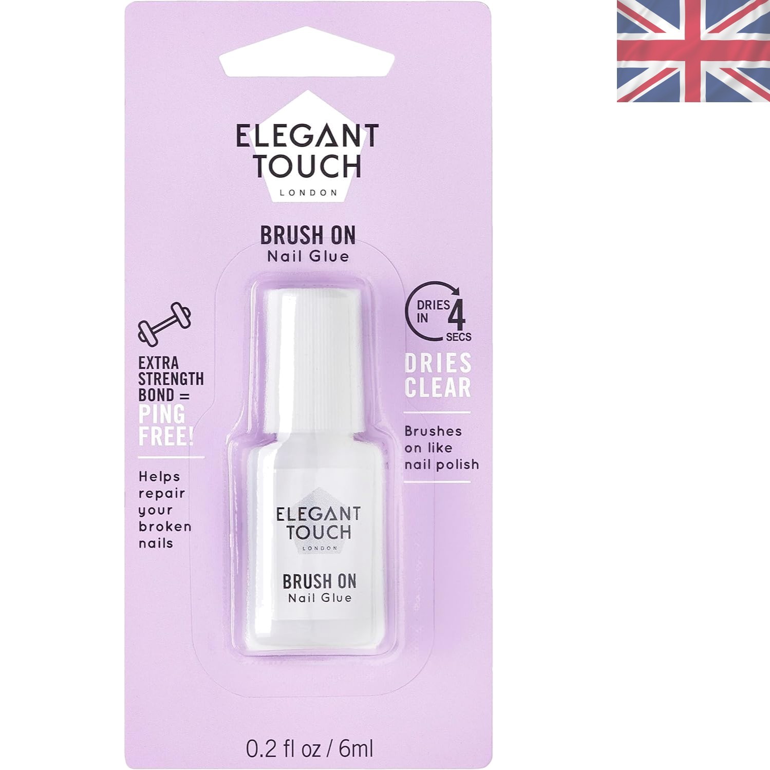 Elegant Touch Brush on Nail Glue Clear 6ml Long Lasting Quick Dry Easy Apply