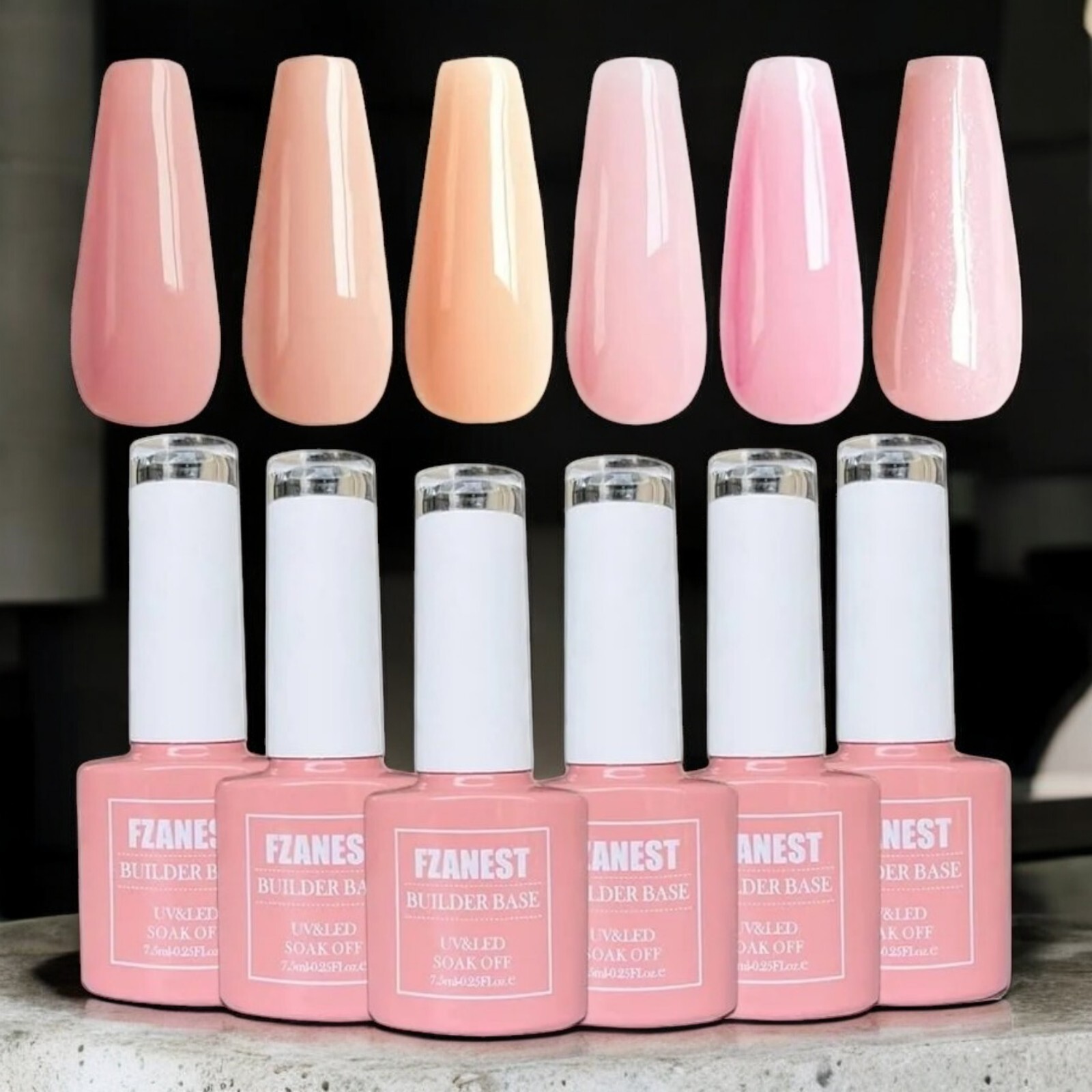 Nail Gel Polish Set Builder Base Sheer Milky Pink Nude Brush On Professional x 6