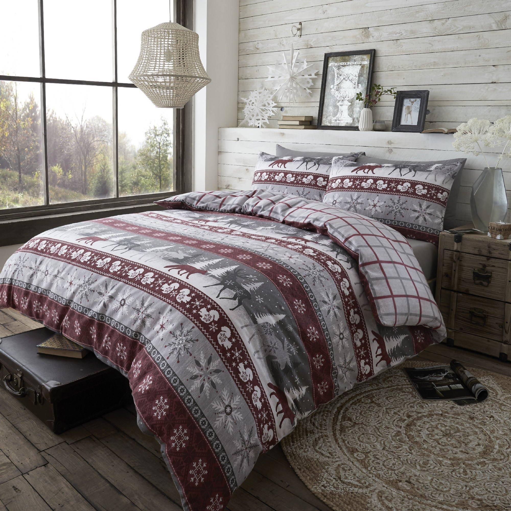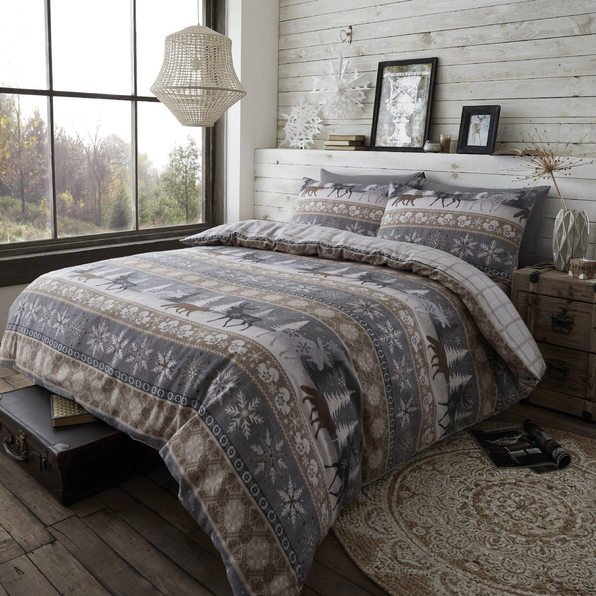 Kampala Hill Nordic Hygge Duvet Cover Set Flannelette Super King Bedding Brushed Cotton Christmas Noel