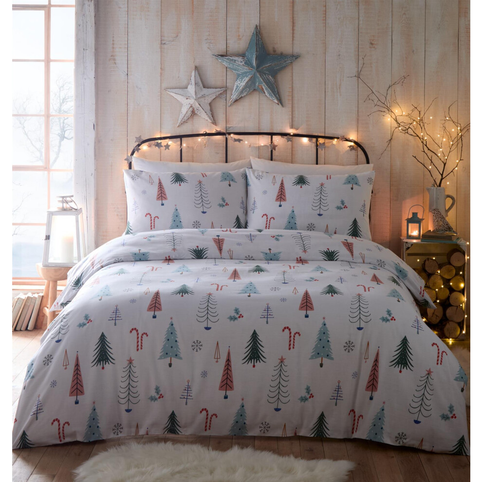 'Festive Christmas Trees' 100% Brushed Cotton Duvet Cover Set