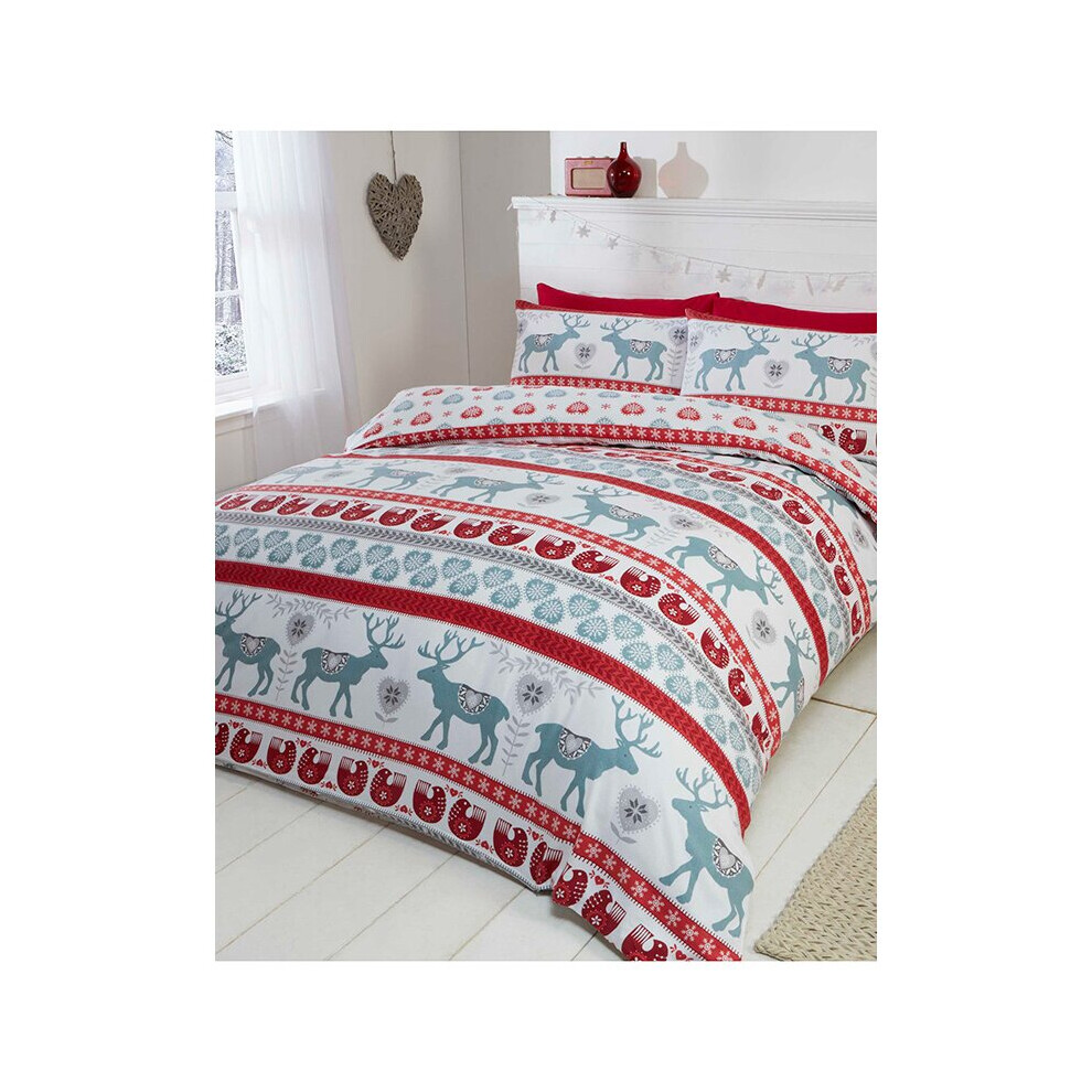 Scandi Christmas Brushed Cotton King Size Duvet Cover Set