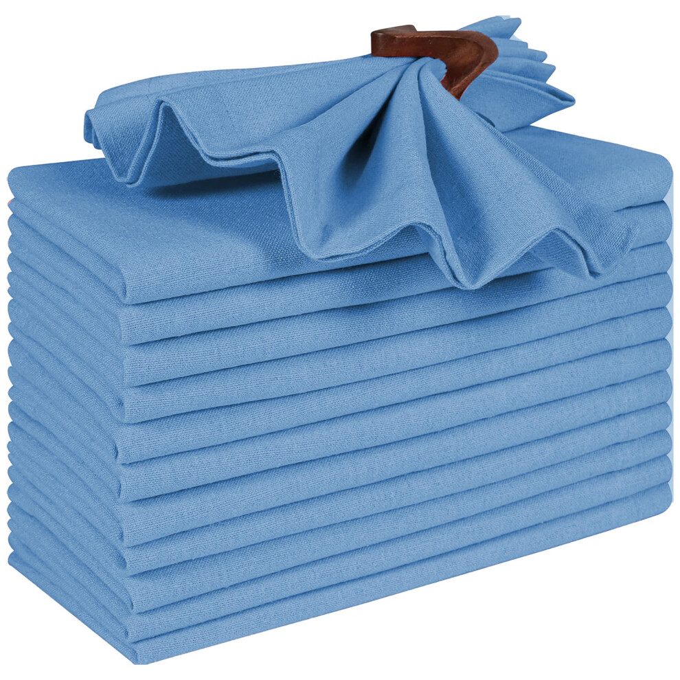Bedding Craft Cotton Dinner Napkins Set of 12 - 18x18 Light Blue - Machine Washable Fabric Napkins Ideal for Weddings Thanksgiving Christmas & Ever