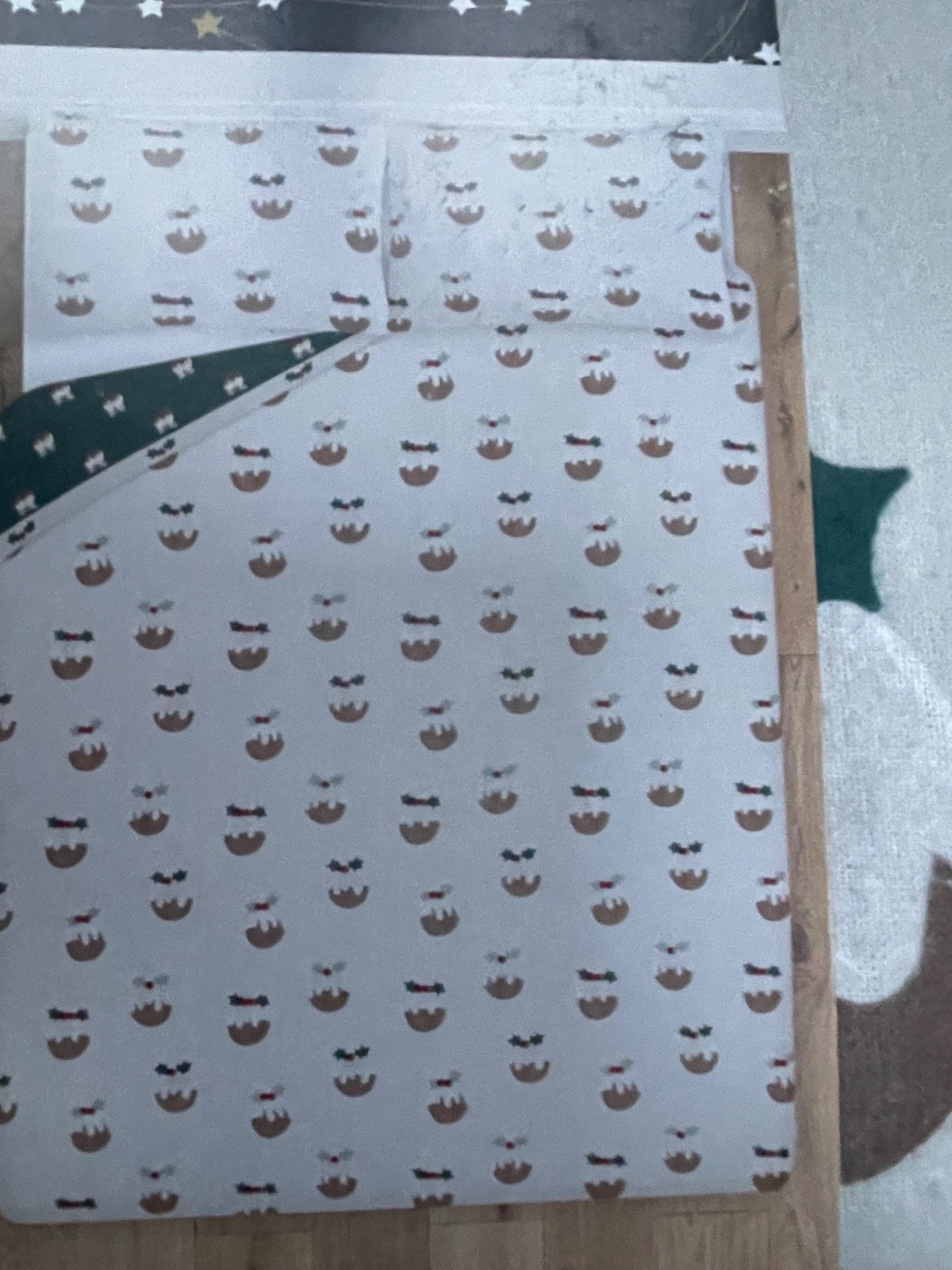 Christmas Double Duvet Cover Pudding Brushed Cotton Bedding Green Cream GEORGE