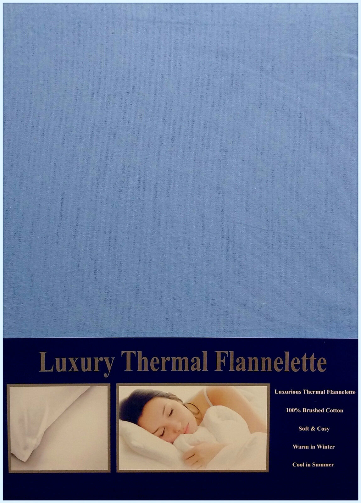 DOUBLE BED FLANNELETTE DUVET COVER SET SKY BLUE 100% BRUSHED COTTON SOFT