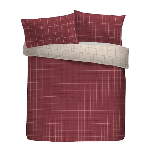 Dreams & Drapes Lodge Wynn Double Duvet Cover Set, 100% Brushed Cotton, 200x200cm, Burgundy, Checkered Pattern, Reversible