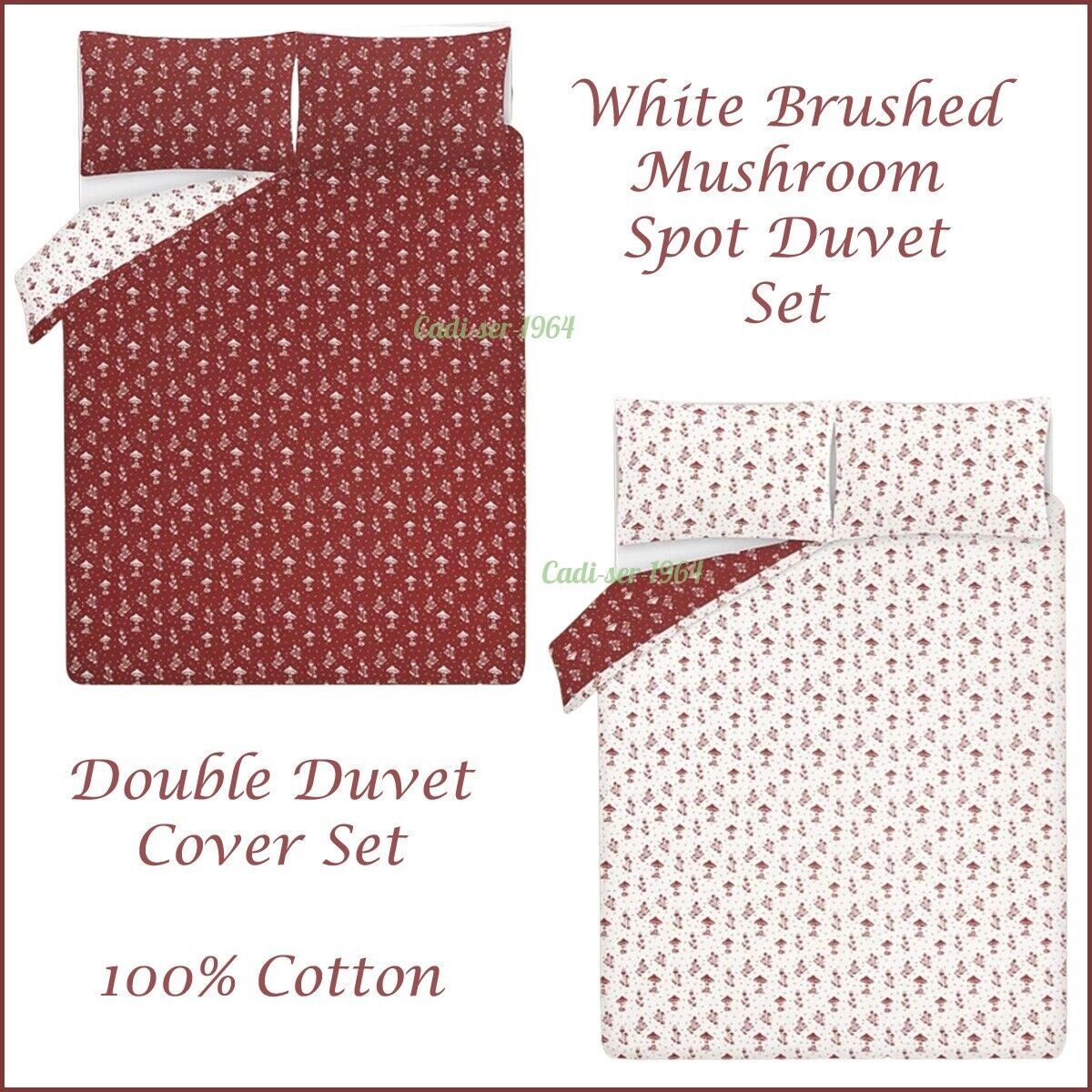 Mushroom Spot Brushed Cotton Double Duvet Cover Set 100% Cotton NEW