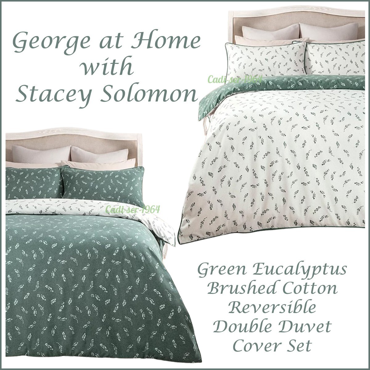 Stacey Solomon Eucalyptus Brushed Cotton Double Reversible Duvet Cover Set NEW
