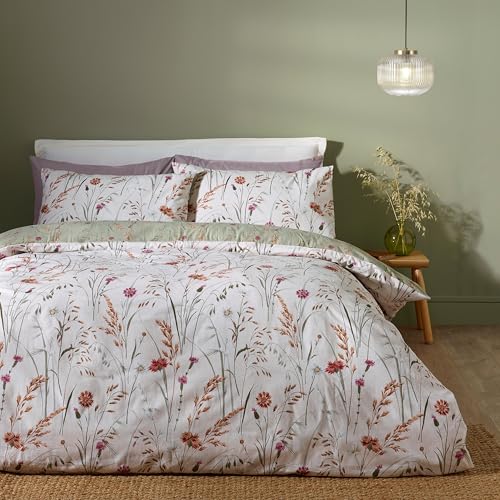 Catherine Lansfield Brushed Grasmere Floral Cotton Reversible Double Duvet Cover Set with Pillowcases Green
