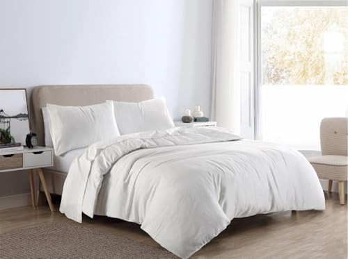 Catherine Lansfield Brushed Cotton Double Duvet Cover Set with Pillowcases White