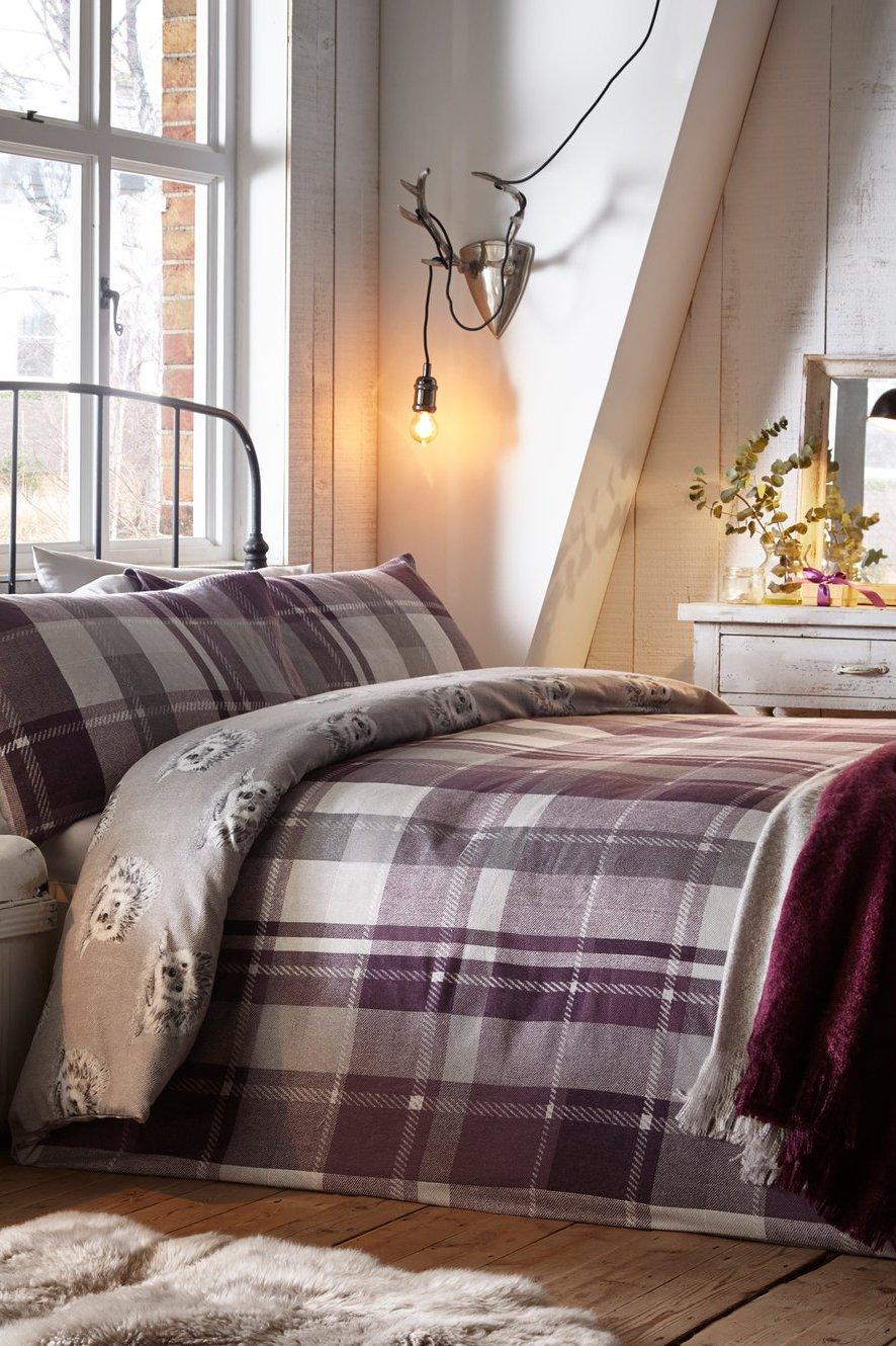 Cotton Traders Fraser Check Brushed Cotton Duvet Set in Purple | Size: Single