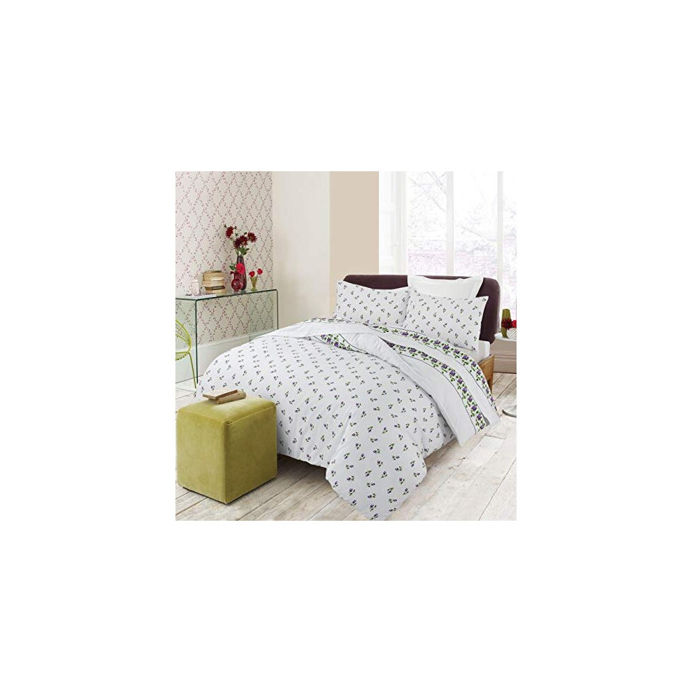 NZ Rose Bud Floral Pattern Luxurious Flannelette 100% Natural Brushed Cotton Thermal Duvet Cover Sets Reversible Bedding Sets (Lilac, Super King)