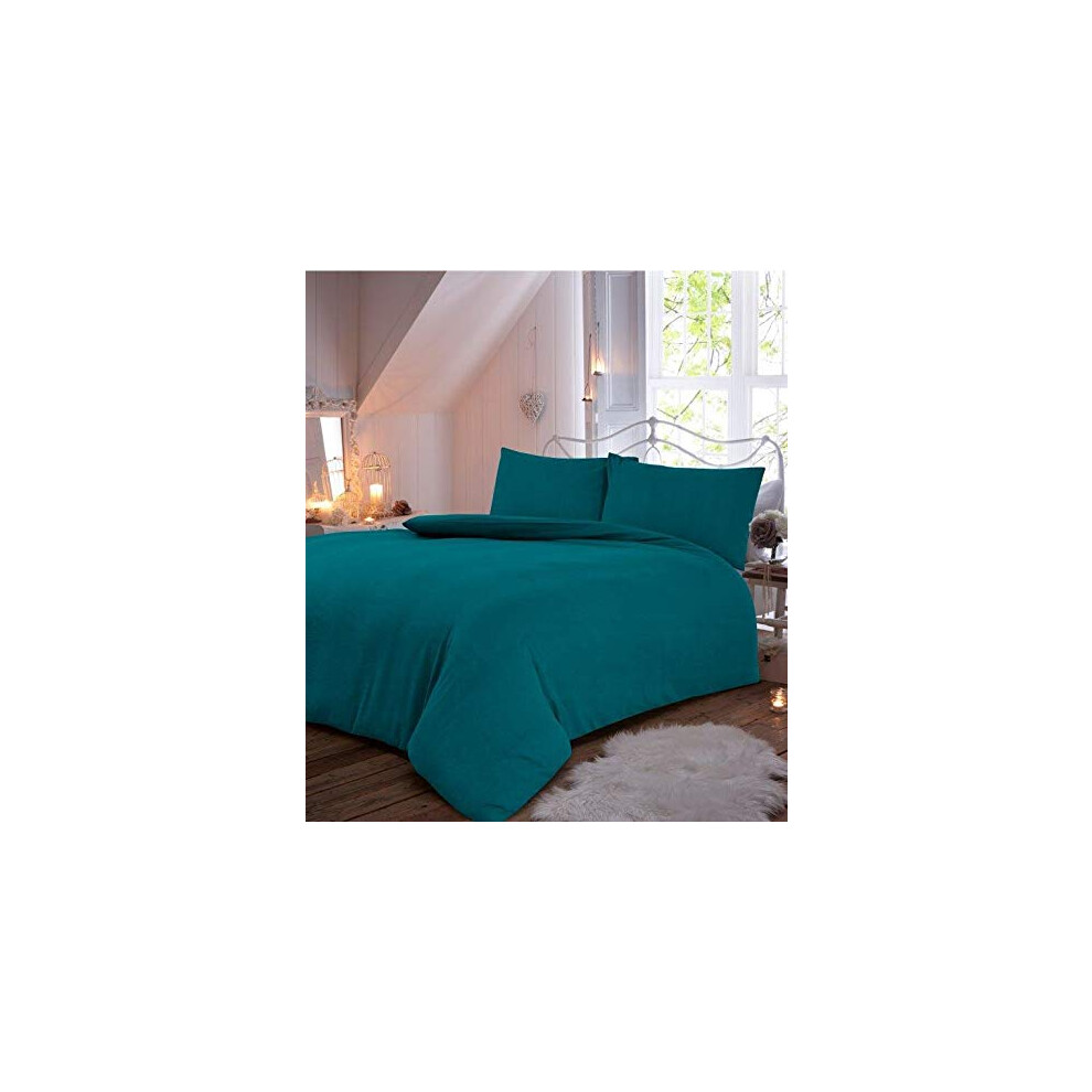 EHD Plain Flannelette 100% Natural Brushed Cotton Luxurious Duvet Cover Sets Reversible Bedding Sets With Matching Pillowcases (Teal, Super King)