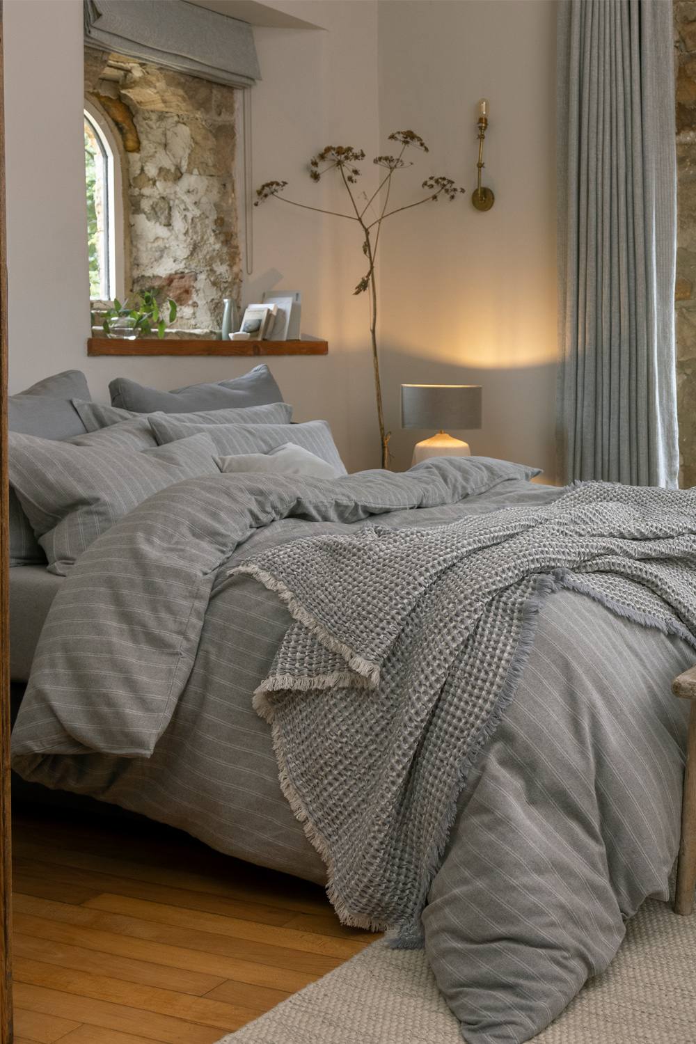 CHRISTY Flannel Stripe 100% Super Soft Brushed Cotton Duvet Sets in Grey | Size: Double