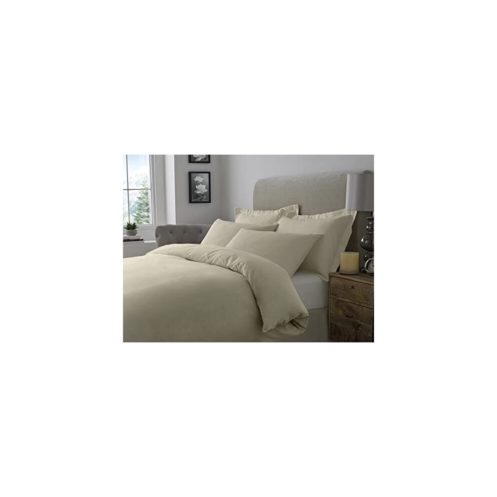 ED 100% Brushed Cotton Duvet Cover Sets | Plain Dyed Reversible Flannelette Bedding Sets With Matching Pillowcases (King, Cream)