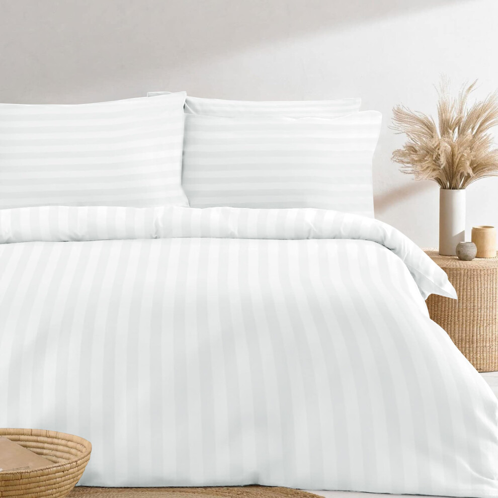 Simply Amelia King Size Duvet Cover Sets Premium Hotel Quality 100% Brushed Cotton White Satin Stripe Quilt Cover Set with Pillowcases Quilt Bedding