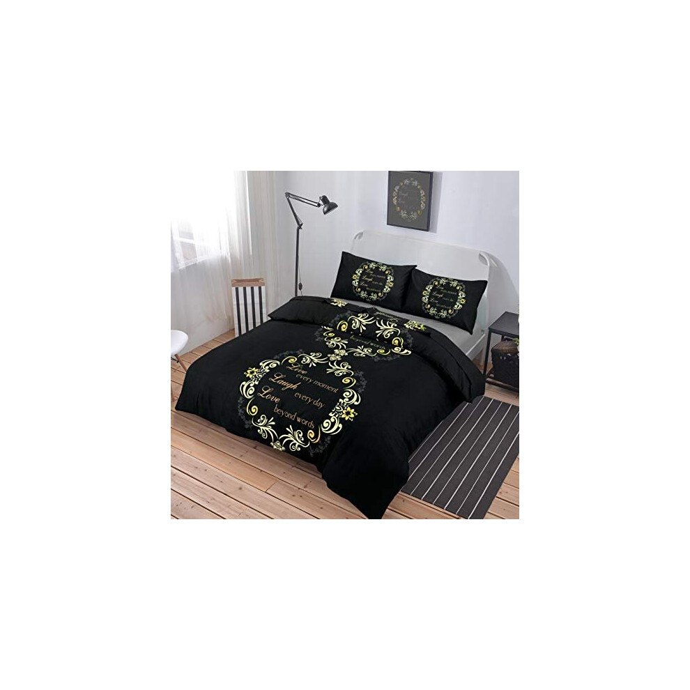 NZ Asher Luxurious Flannelette 100% Natural Brushed Cotton Thermal Duvet Cover Sets Reversible Bedding Sets (Black, King)