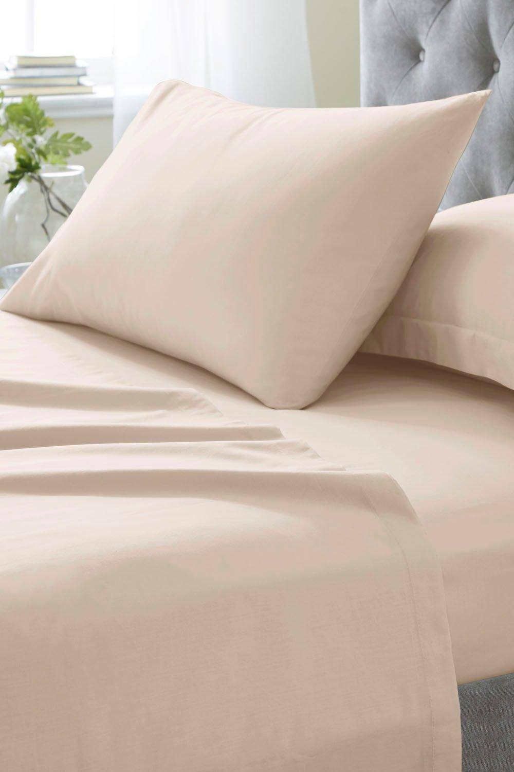 Cotton Traders 200 Thread Count Cotton Percale Fitted Sheet in Beige | Size: King Fitted