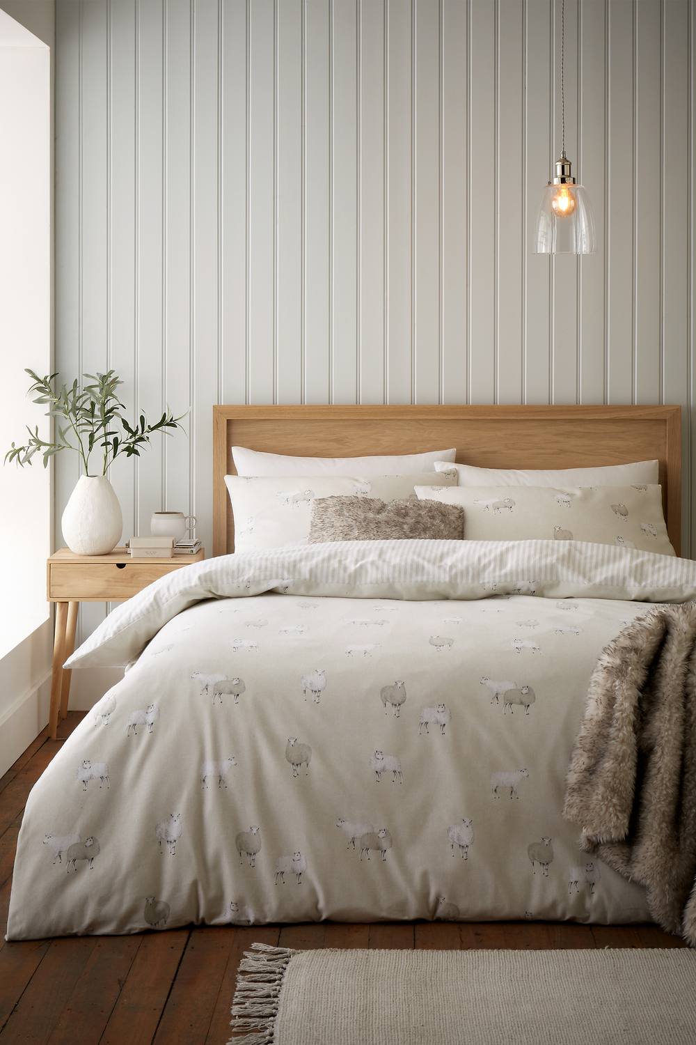 Catherine Lansfield 'Brushed Cotton Sheep' Reversible Duvet Cover Set in Natural | Size: King