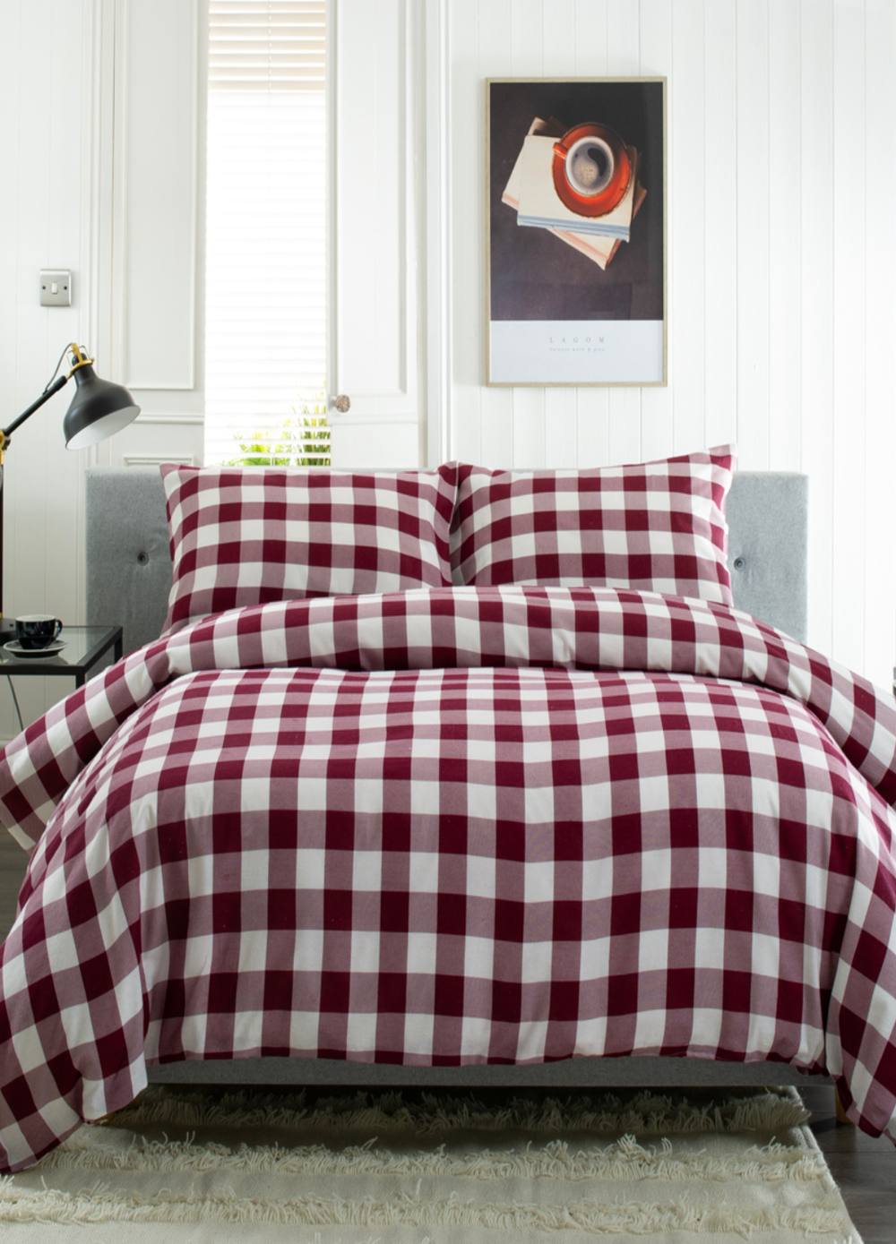 Dreams & Drapes Lodge Wynn Brushed Cotton Duvet Cover Set, King Size 230x220cm, Burgundy, 100% Cotton, Checkered Pattern, Reversible