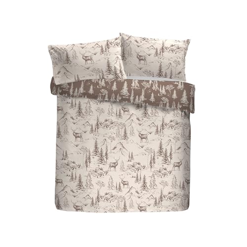 Dreams & Drapes Forest Deer Duvet Cover Set – Super King Bedding Size (260 x 220cm) – 100% Brushed Cotton Flannelette – Reversible Woodland Design – Natural Check – 2 Pillowcases Included