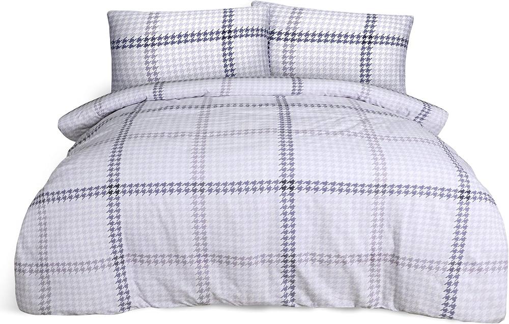 Smart Living Luxury Easy Care Houndstooth Check Brushed Cotton Duvet Cover Set in Lilac | Size: King