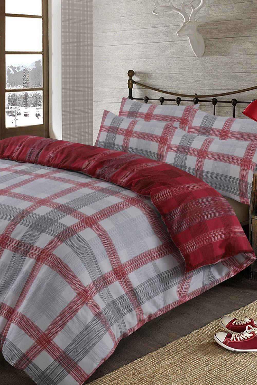 The Lyndon Company Extra Warm Ridgewood Printed Brushed 100% Cotton Duvet set in Red | Size: Super King