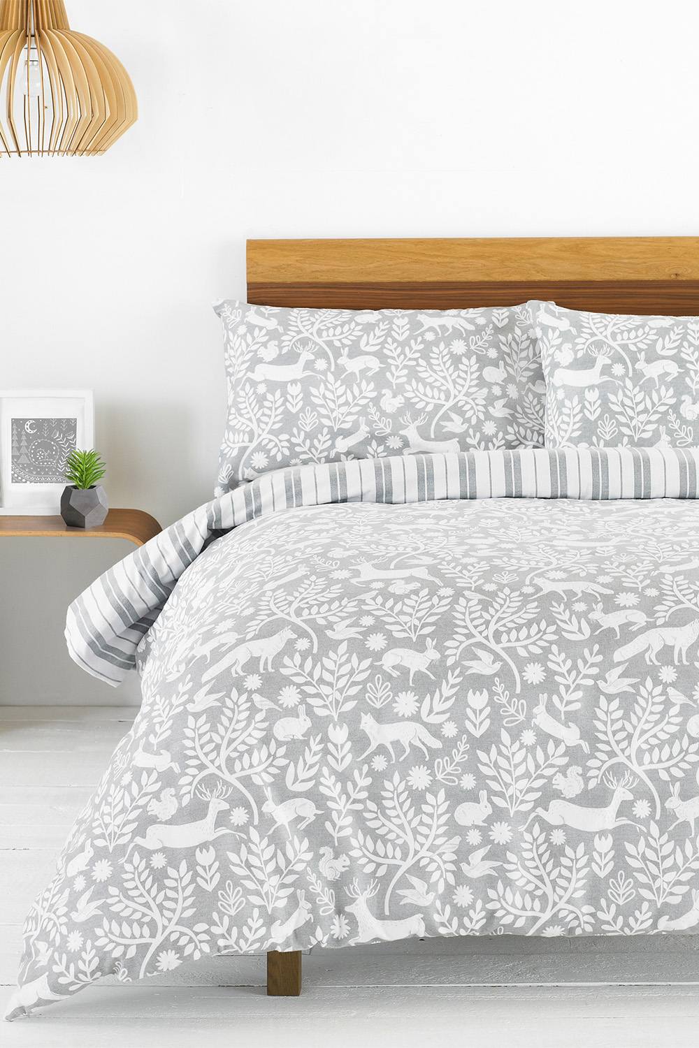Furn Skandi Woodland Floral Brushed Cotton Duvet Cover Set in Grey | Size: King