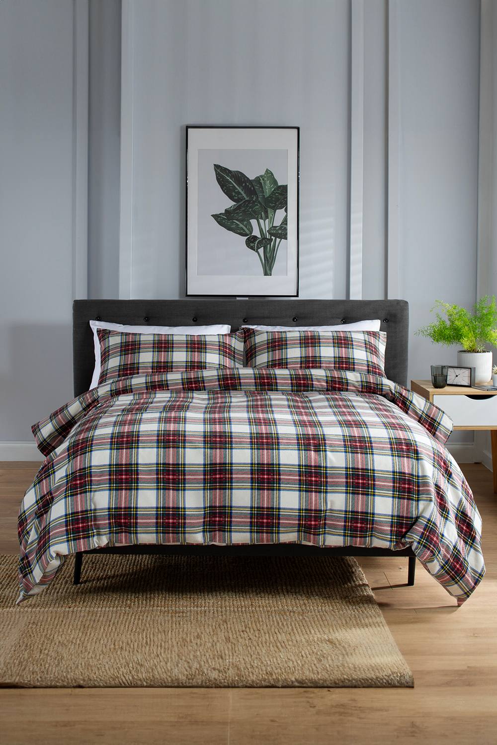 Dreams & Drapes - Connolly - 100 Percent Brushed Cotton Duvet Cover Set in Red, Super King & Connolly Check - 100% Brushed Cotton Duvet Cover Set | Super King Bed Size in Charcoal