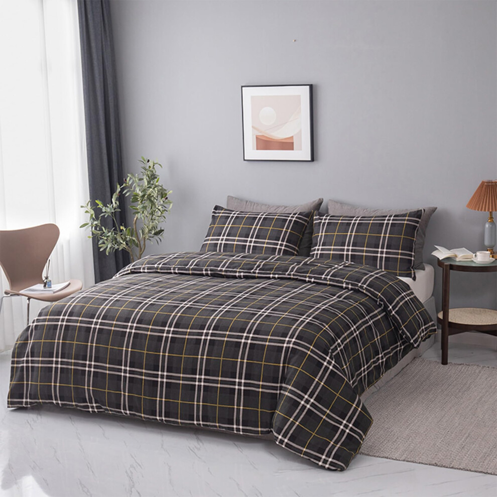 LSC Tartan Check King Size Duvet Cover Set Flannelette Brushed 100% Cotton Flannel Thermal Winter Bedding Duvet Cover Set with Matching Pillow Cases