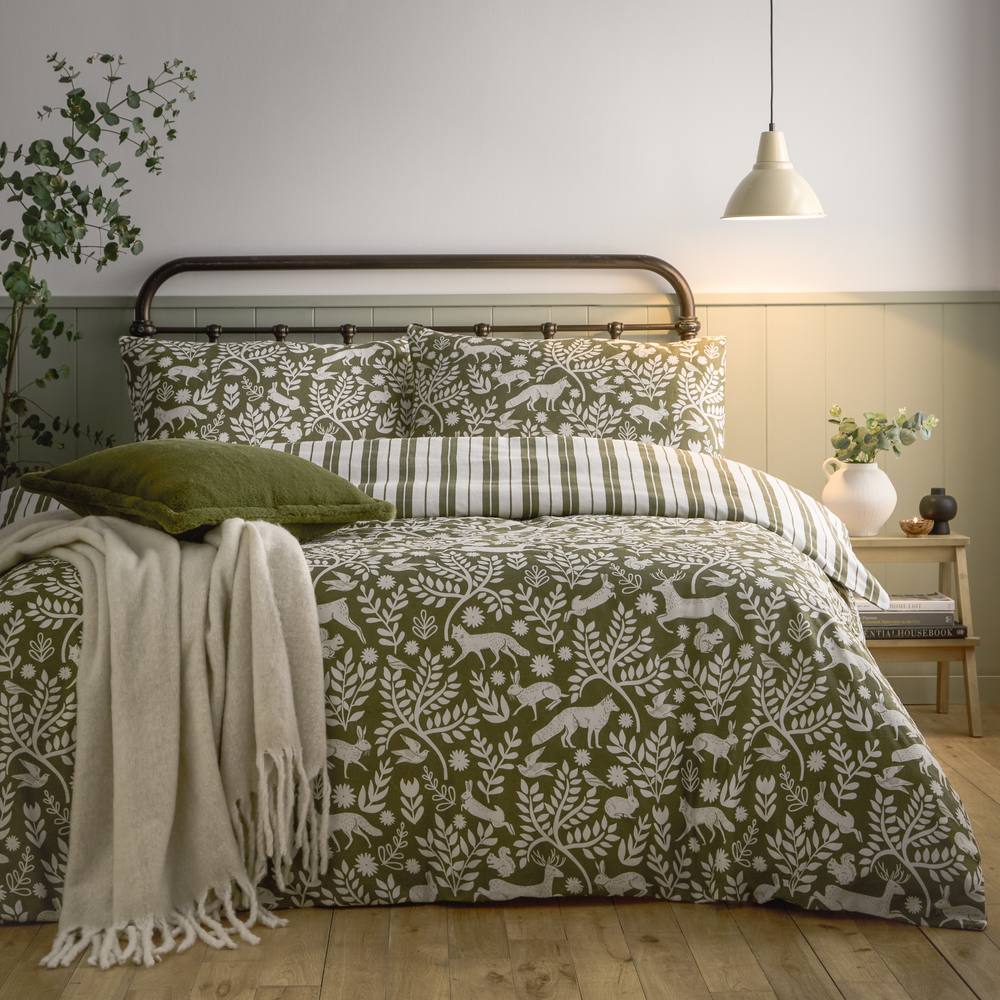 Furn Skandi Woodland Brushed Cotton Duvet Cover Set in Green | Size: Super King
