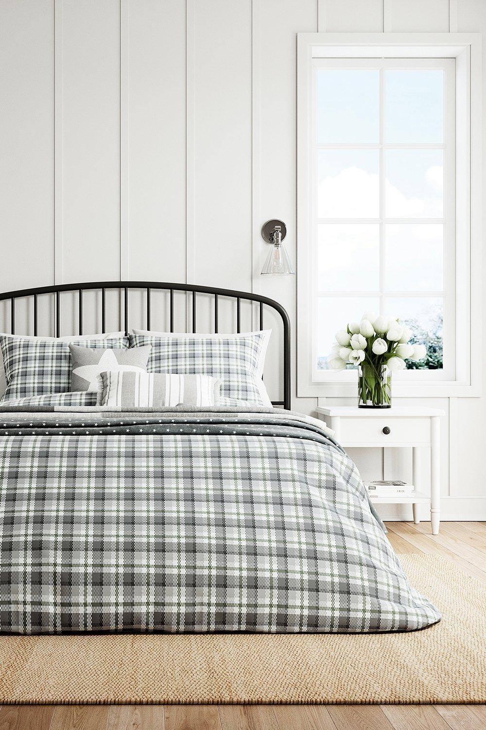 Appletree - Natural & Sage Green Flannelette Duvet Cover - King Bedding Size (230 x 220cm) - Super Soft 100% Brushed Cotton - Light Brown & Green Tartan Bedding - Checkered Duvet Set - Plaid Bed Set