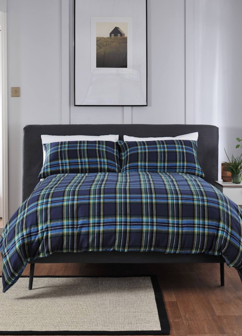 Cotton Traders Fraser Check Brushed Cotton Duvet Set in Mid Blue | Size: King