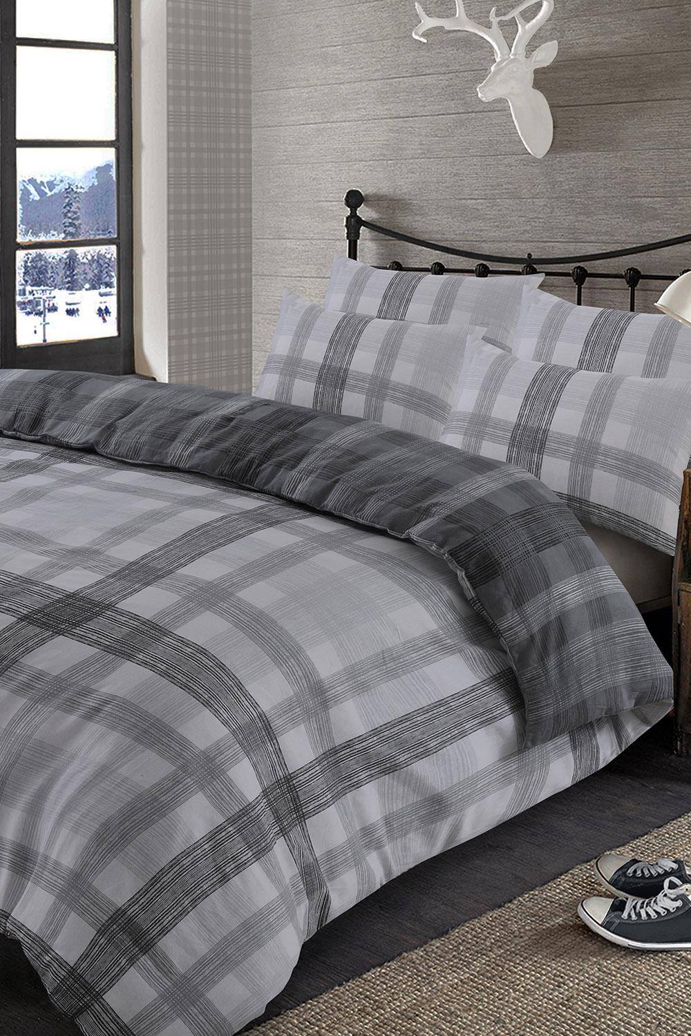 MHT Stag Tartan XMAS Thermal Flannel Duvet Cover Set Brushed Cotton All British Size (Grey, Super King)