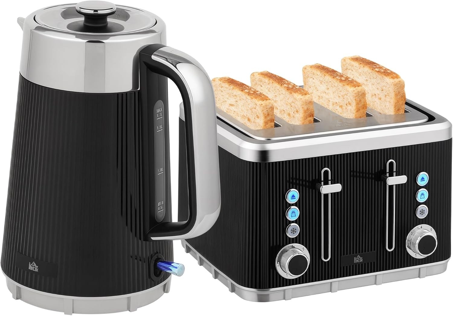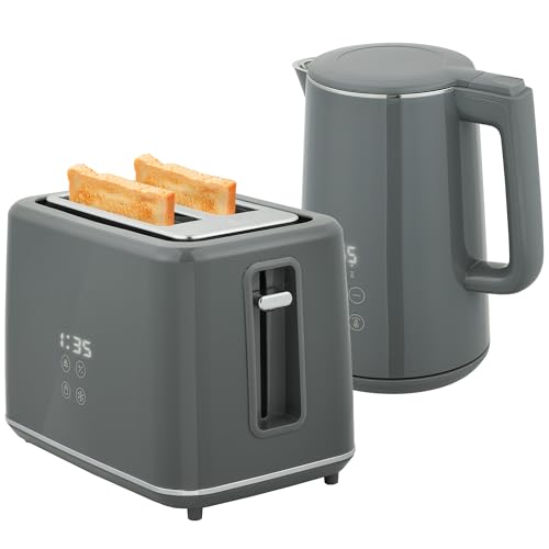 Brushed steel kettle and toaster