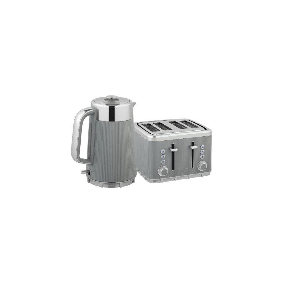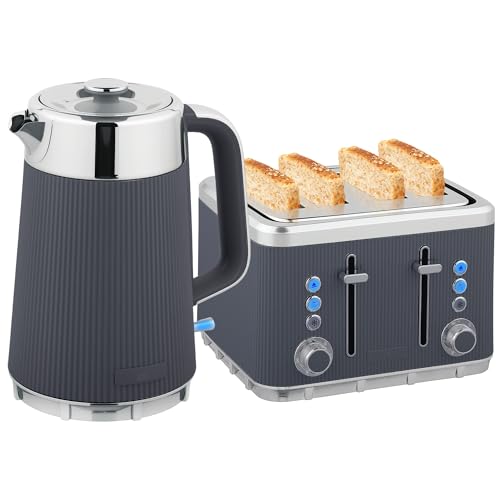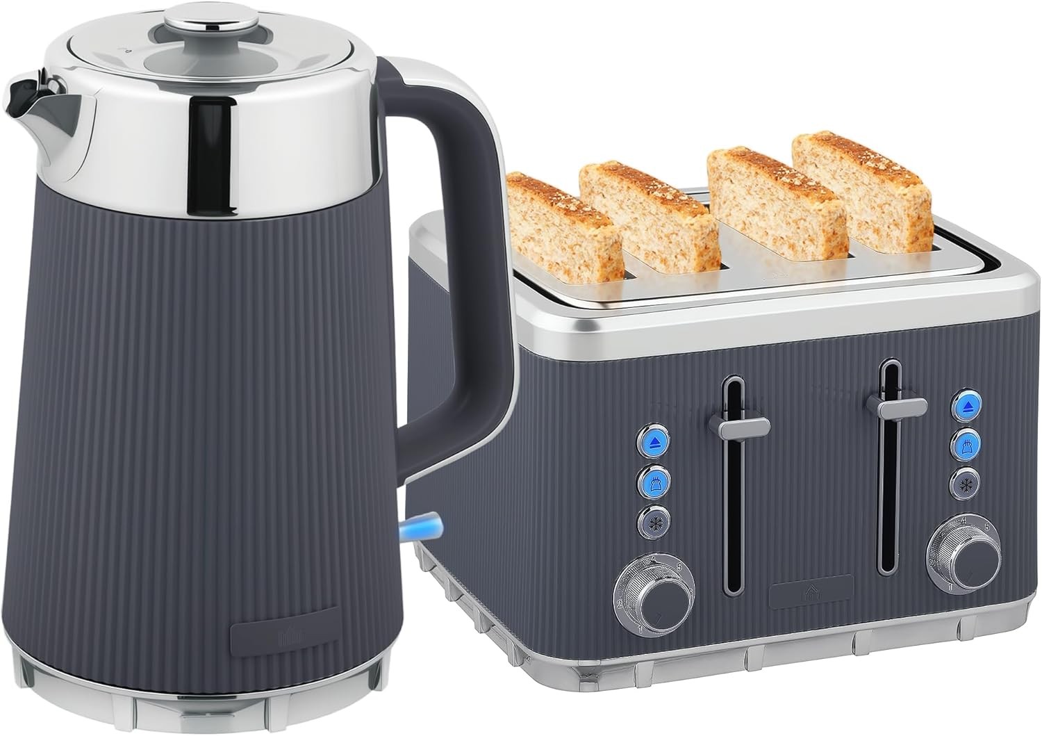 Stainless Steel Kettle and Toaster Set, 1.7-litre 3000W Rapid Boil Kettle, Grey and Silver Tone