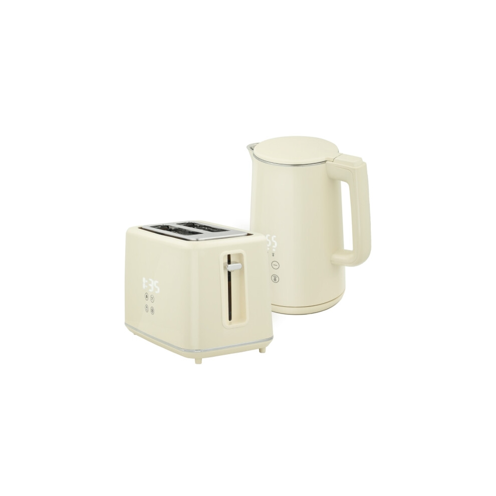 DAEWOO Kensington Stainless Steel Jug Kettle And 2 Slice Toaster Set in Cream