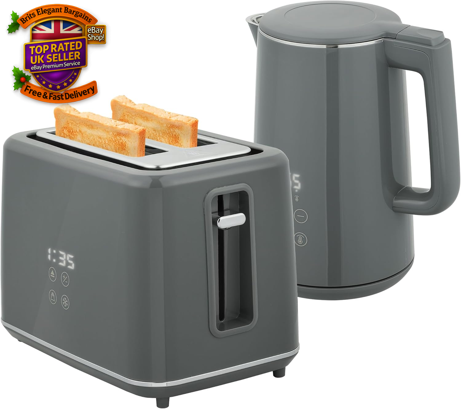 Digital Stainless Steel Kettle and Toaster Set, 1.5L 3000W Fast Boil Ket