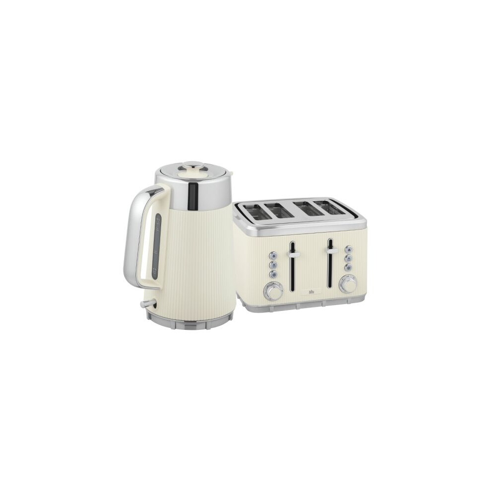 Polished Stainless Steel Kettle and Toaster Set - Cream