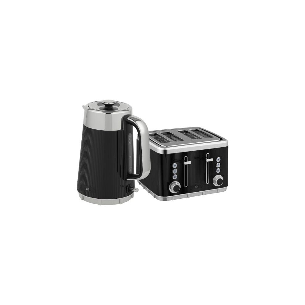 HOMCOM Electric Stainless Steel Kettle and Toaster Set, 3000W 1.7L UK Strix Thermostat Fast Boil Kettle w/Limescale Filter, Cool Touch Body, 4 Slice Toaster with 7 Browning Levels, Crumb Tray, Black