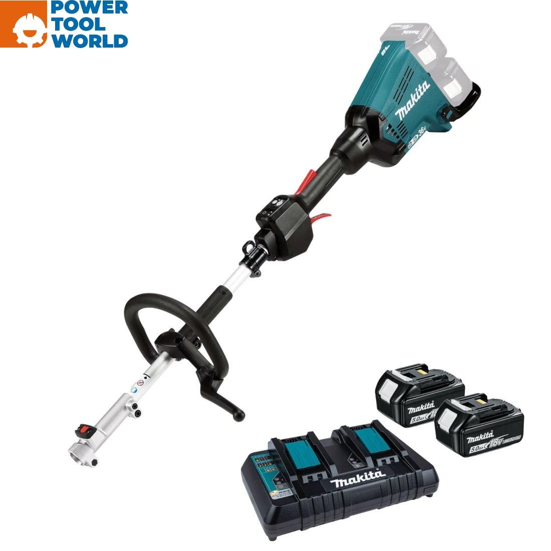 Makita DUX60 Twin 18v LXT Cordless Brushless Split Shaft Garden Multi Tool Set 2 x 5ah Li-ion Battery Charger