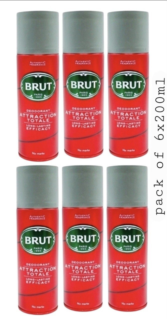 6x BRUT ATTRACTION TOTALE DEODORANT SPRAY FOR MENS 6x200ml Pack