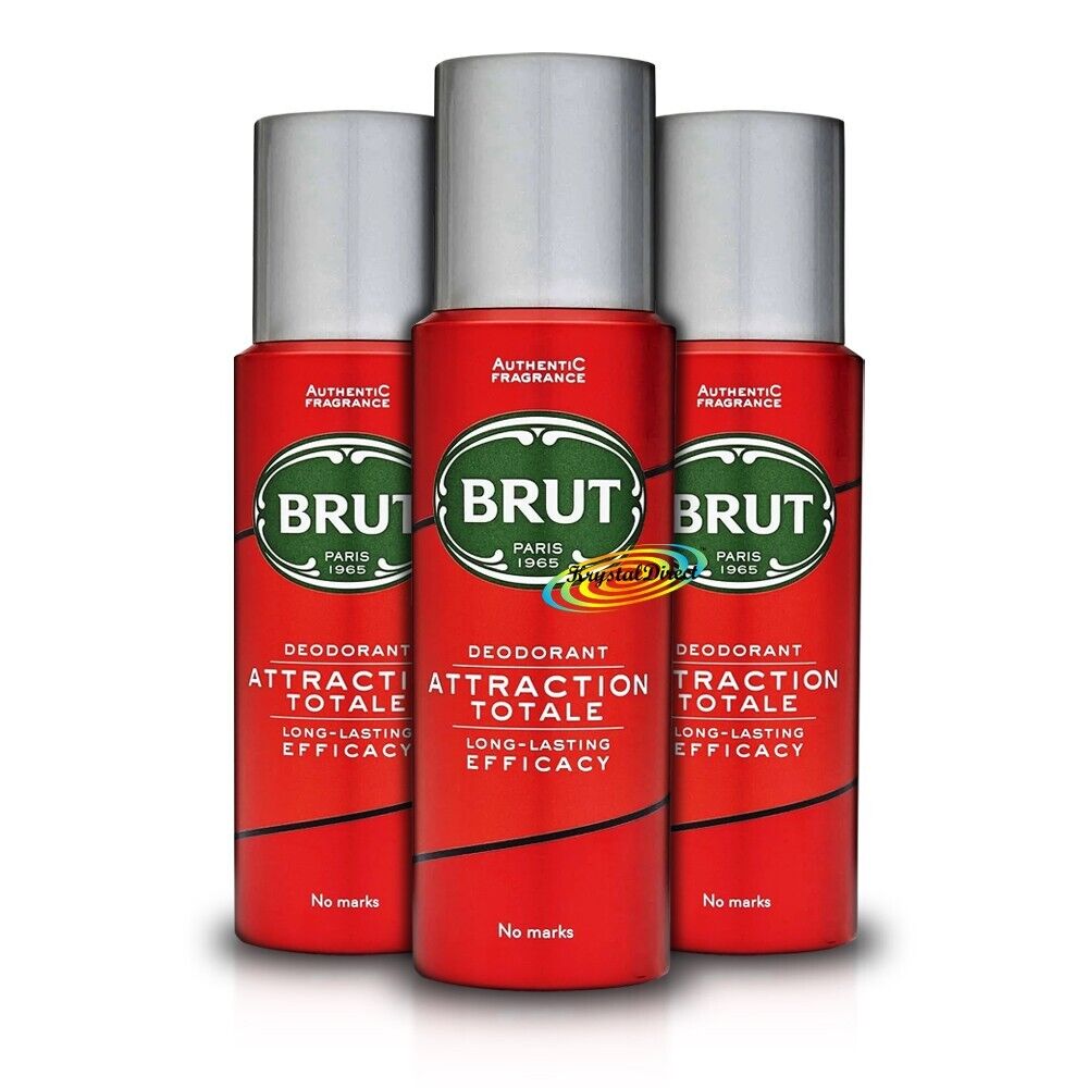 3 Pack Brut Attraction Totale Long Lasting Deodorant Spray for Men, 200ml Each